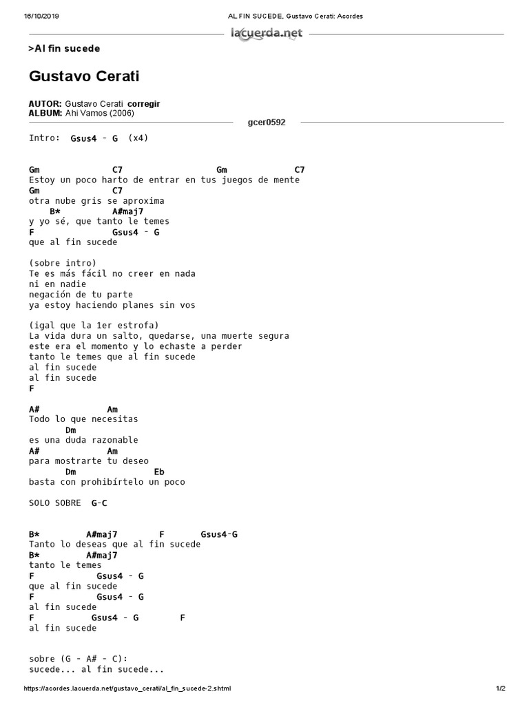 Al Fin Sucede Gustavo Cerati Acordes Pdf Albumes Entretenimiento General